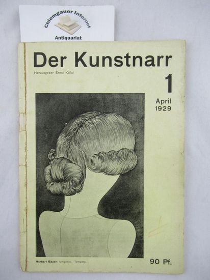 Der Kunstnarr. Nr. 1 . April 1929. ( alles Erschienene). Dessau, Ernst Kallai, 1929. 40 Seiten Mit 20 Abbildungen von Herbert Bayer und Alexander Schawinsky. 21 x 15 cm. Illustrierte Originalbroschur. 21 x 15 cm. Illustrierte Originalbroschur, Vorderdeckel innen im Bug mit altem Papierstreifen verstärkt. Rücken etwas brüchig; Deckel mit kleinen Knickspuren, obere vordere Deckelecke mit schwachem Knick ; leicht berieben, fleckig und angestaubt, innen gutes Exemplar. - Wingler 162. Fleischmann 240 f. ? EINZIGE Nummer dieses vom Herausgeber der Bauhaus-Zeitschrift in eigener Regie edierten Magazins. Beabsichtigt war anscheinend, in "zwangloser Folge" eine Fortsetzung erscheinen zu lassen, allerdings war das Ganze doch eher als Aprilscherz angelegt. "Da er [der Herausgeber] wie alle vernünftigen Narren faul und liederlich ist, vermag er den Erscheinungstermin der zweiten Nummer nicht genau anzugeben." - Mit den Beiträgen von E. Kállai: Das Bauen und die Kunst, Die moderne Architektur, Zehn Jahre Novembergruppe, Kunst und großes Publikum sowie mit dem Prosastück Die kahle Wand von W. KANDINSKY . Mit Abbildungen von H. Arp, C. Brancusi, M. Ernst, E. Mataré, H. Bayer, A. Schawinsky, F. Kuhn, F. Winter, G. Marcks u. a. Die Umschlagillustrationen stammen von Bayer und Schawinsky. ? Ernst ( Ernö) Kállai was a Hungarian emigré author, journalist and art critic closely aligned with members of the Hungarian avant-garde in diaspora after 1919, and as a critic played an important role in the evolution from Expressionism into Constructivism, articulating and promoting Bauhaus principles both in Germany and Hungary (where he finally returned with the rise of Nazism). He was published widely in both countries from 1920, eventually being silenced by the communist regime after 1948. Despite its humble size, the articles generated a good amount of response among the readership, notably Kunst und die grosse Publikum. Artwork by Bauhäusler (Bayer, Schawinsky) and allied artists illustrated. - IN KEINER deutschen oder österreichischen Bibliothek außer in EINER ( Auskunft KVK) (Wir bieten zahlreiche Titel aus diesem Sachgebiet auf unserer HP an - we offer a lot of titles in this field on our website ).