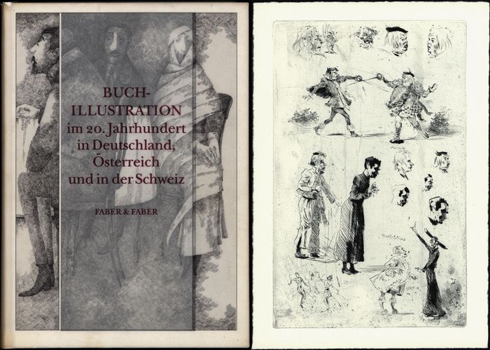 Buchillustration im 20. Jahrhundert in Deutschland, Österreich und in der Schweiz. Berlin/Leipzig, Faber & Faber Verlag, 1995. 4°. 30 x 22 cm. 288 Seiten. Original-Pappband mit halbtransparentem Original-Schutzumschlag. (= Literarische Bilderwelten des 20. Jahrhunderts, Band 3). Eines von 100 Exemplaren der Vorzugsausgabe mit lose eingelegter Original-Radierung von Fritz Fischer auf Velinpapier (Blattmaße: 28 x 19,5 cm, Plattenmaße: 24,8 x 15,6 cm). Mit 40 Abbildungen in Farbe und 150 Abbildungen in Schwarz-Weiß. Schutzumschlag etwas gebräunt, mit einigen kleinen Randeinrissen und einem größeren (ca. 6,5 cm), ansonsten sehr gutes Exemplar.
